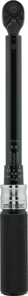 Le « craquement » lorsque le couple de serrage est atteint peut être très silencieux. Reste donc vigilant et garde un oeil sur le course à vide dans la tête de l’outil. Une fois que le couple défini est dépassé, des couples plus élevés sont transmis et risquent d’endommager ton vélo.