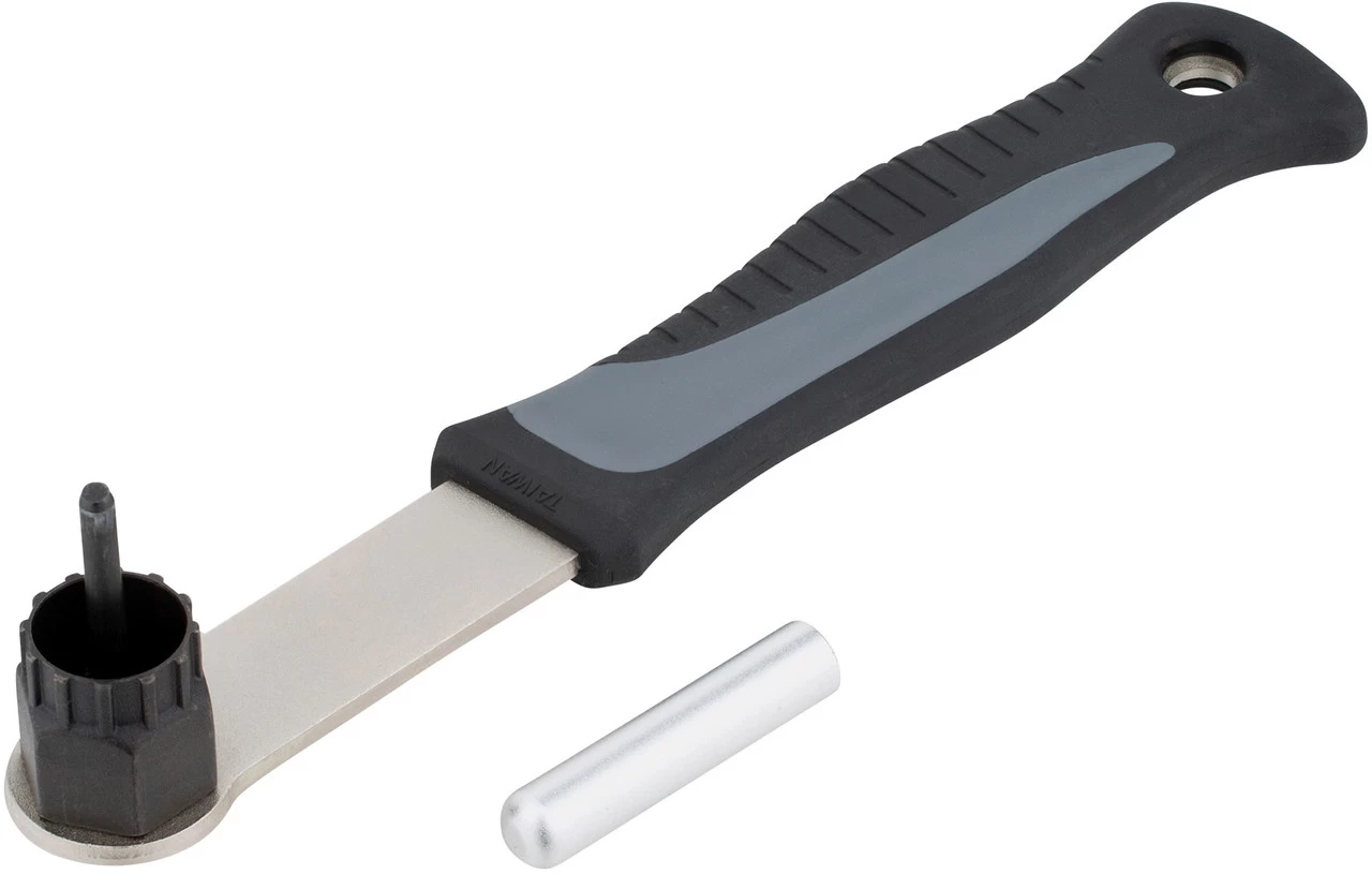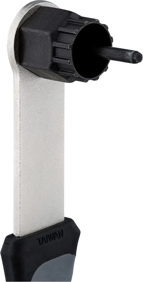 L’extracteur de cassette de 3min19sec peut être utilisé pour monter et démonter les bagues de verrouillage des cassettes de type Shimano HG (Hyperglide) avec dents internes. Il peut également être utilisé pour les cassettes compatibles qui ont la même denture sur la bague d’extrémité, par exemple SRAM, ou pour les disques de frein Center Lock. Le point fort est qu’un adaptateur pour 12 mm est inclus, ce qui permet de rendre l’extracteur compatible avec les lockrings pour les moyeux arrière à axe traversant de 12 mm. La douille de 12 mm peut être facilement fixée à la broche de guidage de 5 mm intégrée et est maintenue en place par un aimant. Tu n’as donc besoin que d’un seul outil pour visser les roues à serrage rapide ou axe traversant. L’extracteur est en acier et est équipé d’une poignée en plastique qui est facile à saisir et ne risque pas de déraper.