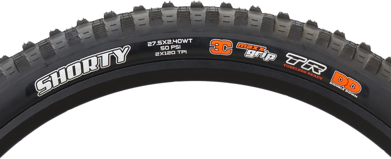 Contenu :1 x pneu souple Maxxis Shorty 3C MaxxGrip DD WT TR 27,5″