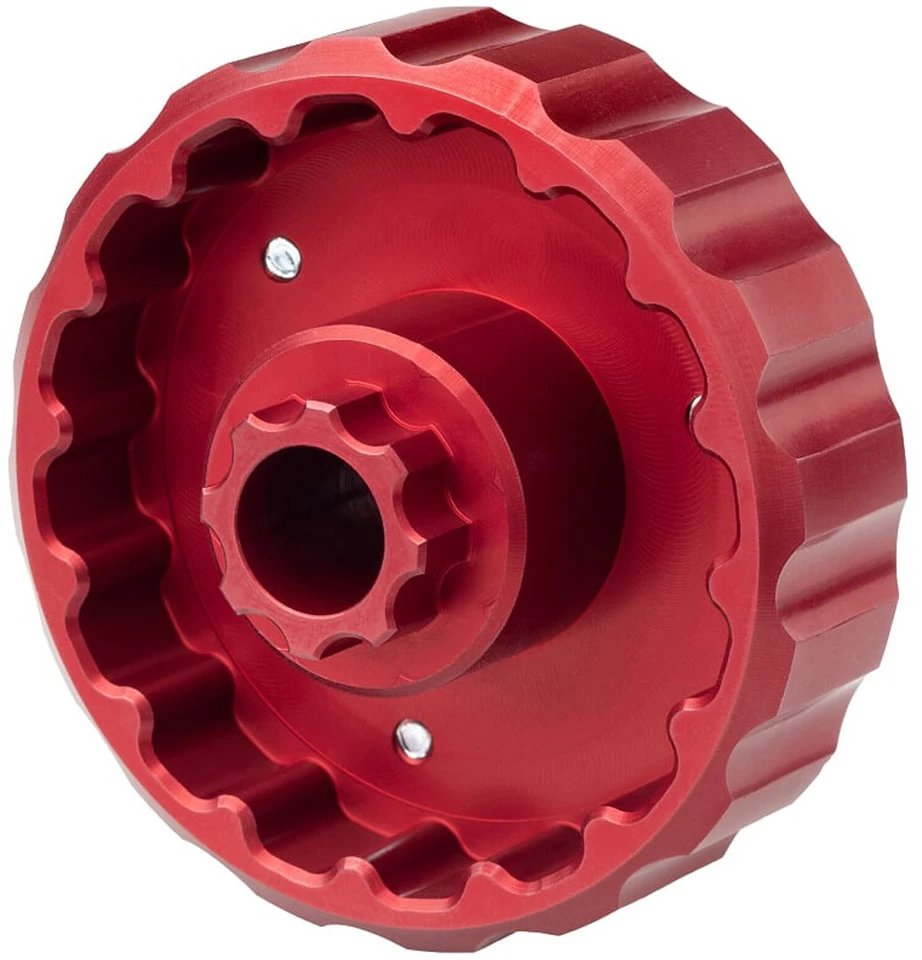 Le BBS4416 est l’outil de pédalier le plus courant de Wolf Tooth Components, car il peut être utilisé pour de nombreux pédaliers Shimano (par exemple BB80, BB5700) ainsi que pour FSA, Chris King, Hope et certains autres fabricants. D’une manière générale, il convient aux cuvettes à 16 dents et de 44 mm de diamètre extérieur. L’outil dispose donc de 16 encoches pour plus d’adhérence lors du vissage manuel des cuvettes. Tu peux le combiner avec une clef à cliquet carrée de 3/8″ ou une clef dynamométrique de 1″ . Grâce à ses inserts magnétiques en acier, il convient parfaitement pour la clef Pack Wrench. Comme tous les outils de pédalier Wolf Tooth, le BBS4116 est fabriqué en CNC pour assurer une qualité particulièrement élevée. En prime, une clef pour capuchon de protection à 8 dents est intégrée, avec laquelle la vis des pédaliers Shimano peut être desserrée.