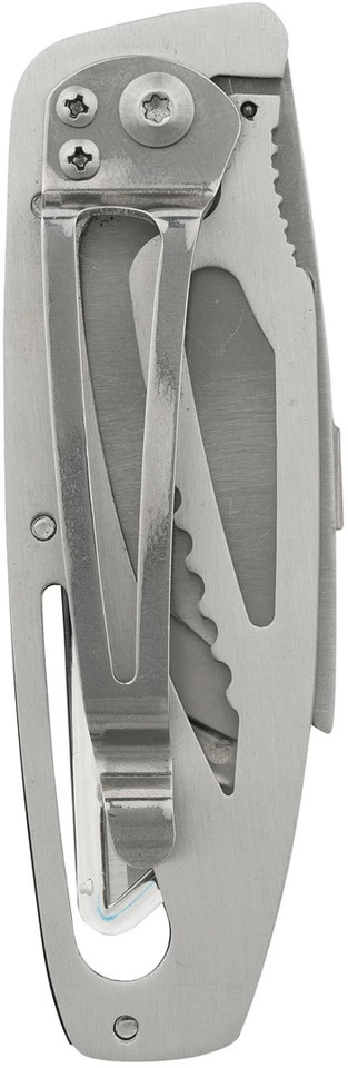 Couteau pliant compact et polyvalent, fabriqué en acier inoxydable et en aluminium.