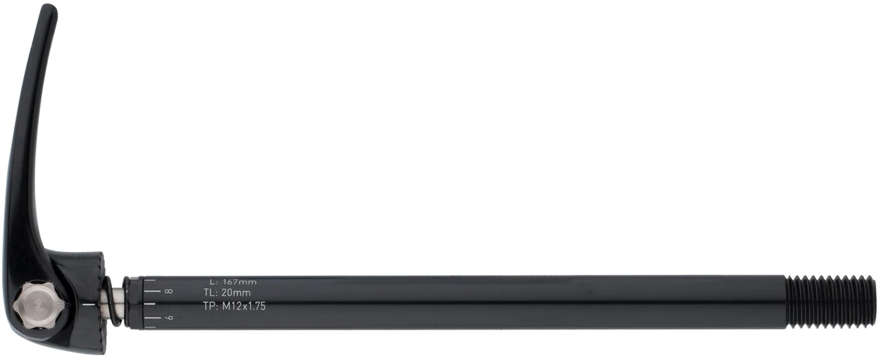 Informations techniques :Utilisation :VTTTaille:12×135 / 12×142 / 12×150 mmLongueur de l’axe :167 / 174 / 182 mmLongueur du filetage:20 mmPas de filetage :M12x1,75Versions :12 x 135 mm :