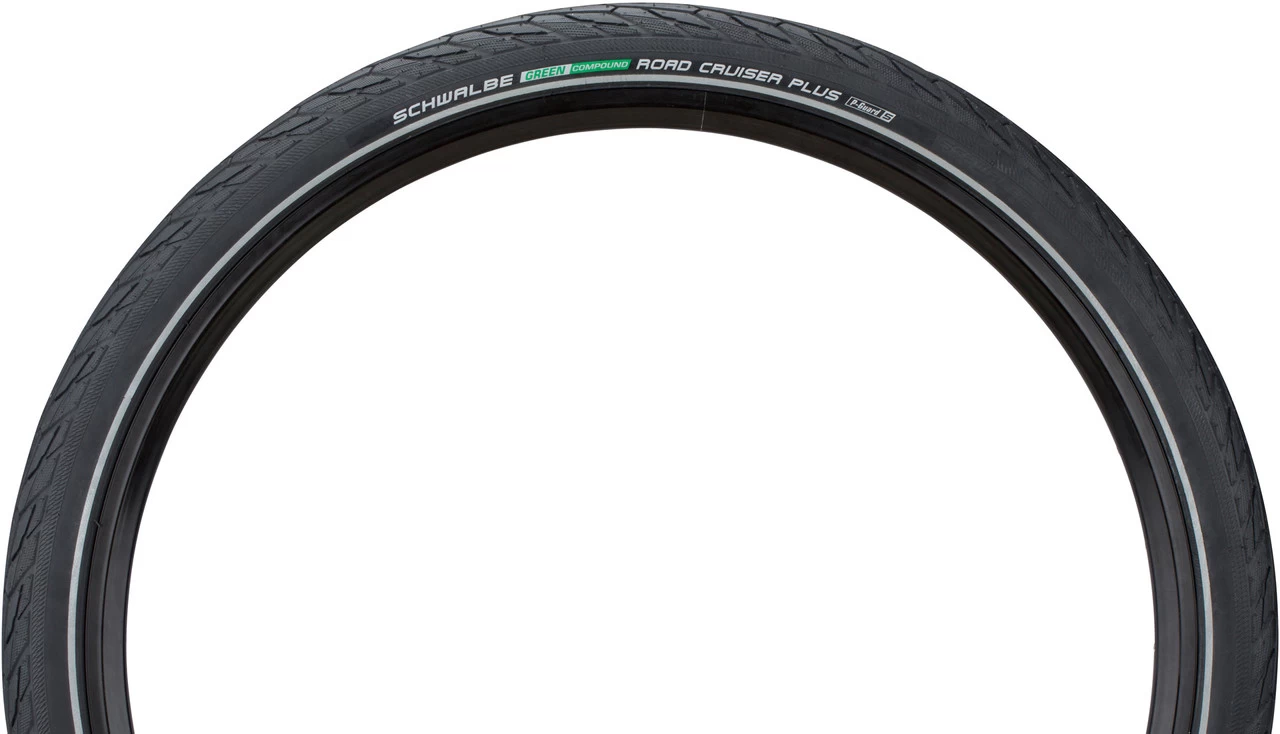 Le pneu rigide Road Cruiser Plus de Schwalbe est durable. Il est doté d’une bande de roulement en – caoutchouc avec des polymères fabriqués exclusivement à partir de matières premières renouvelables et recyclées. La technologie spéciale de Schwalbe permet pour la première fois de fabriquer durablement le caoutchouc de la bande de roulement d’un pneu dans une qualité standard exigeante.
