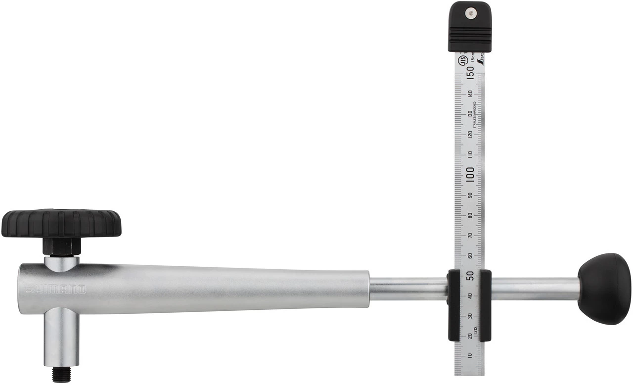 L’outil de redressement Shimano TL-RD11 permet d’aligner les pattes de dérailleur. L’échelle numérique rotative avec système d’index permet une mesure précise. L’outil enthousiasme également par sa poignée télescopique pratique et sa stabilité. Il est également conçu pour minimiser la pression sur la patte de dérailleur lorsque tu mesures.