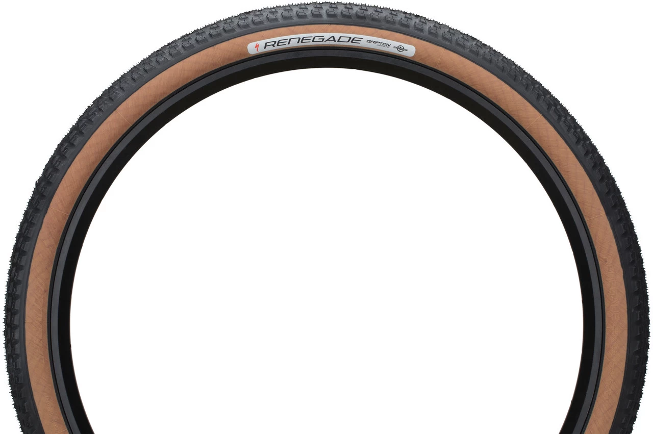 Le pneu souple Renegade 29″ de Specialized permet d’atteindre vitesse et traction sur les terrains durs en cross-country. Que ce soit en montée ou sur le plat, que tu prennes un virage ou que tu accélères, ce pneu est toujours là pour toi avec sa propulsion et son adhérence. Cela est dû au composé GRIPTON®, qui combine amortissement, bonnes propriétés de roulement et adhérence sur les solssecs comme mouillés. Grâce au 2Bliss Ready Casing, le Renegade, avec sa paroi latérale marron chic, peut également être monté sans chambre à air.