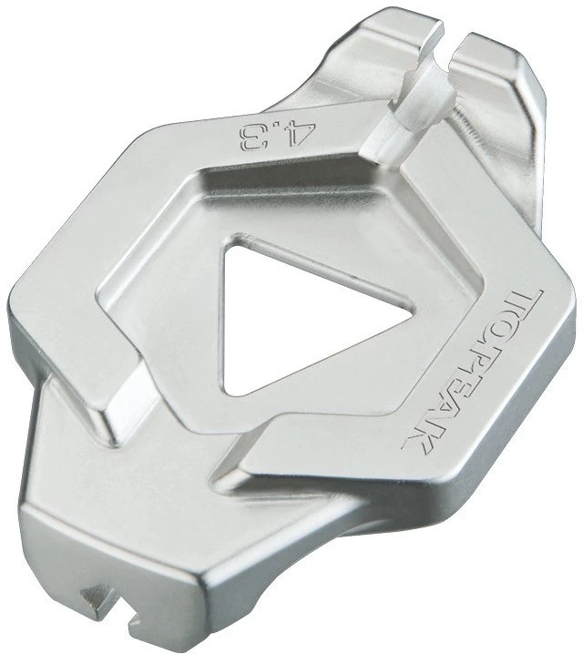 Clef à rayons en acier trempé. Chaque version est compatible avec deux types de rayons différents.