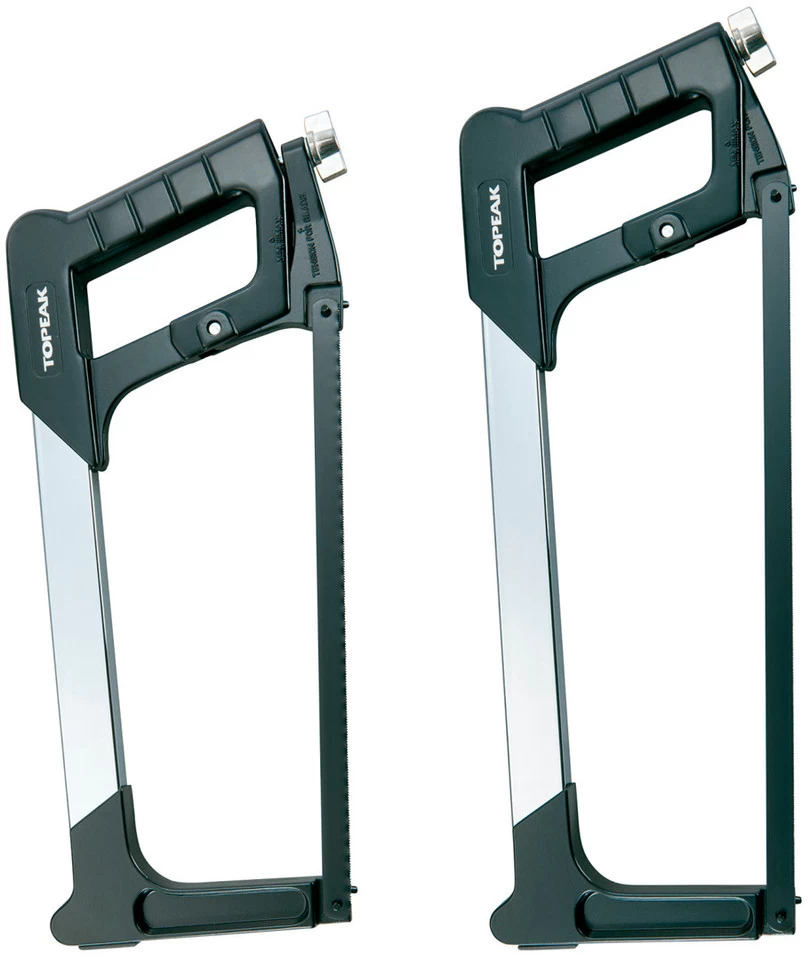 La HackSaw de Topeak convient pour scier les tuyaux en aluminium et en carbone. Son cadre peut être ajusté pour s’adapter à des lames de scie de 10 et 12 pouces, et à un angle de coupe de 45° ou 90°.
